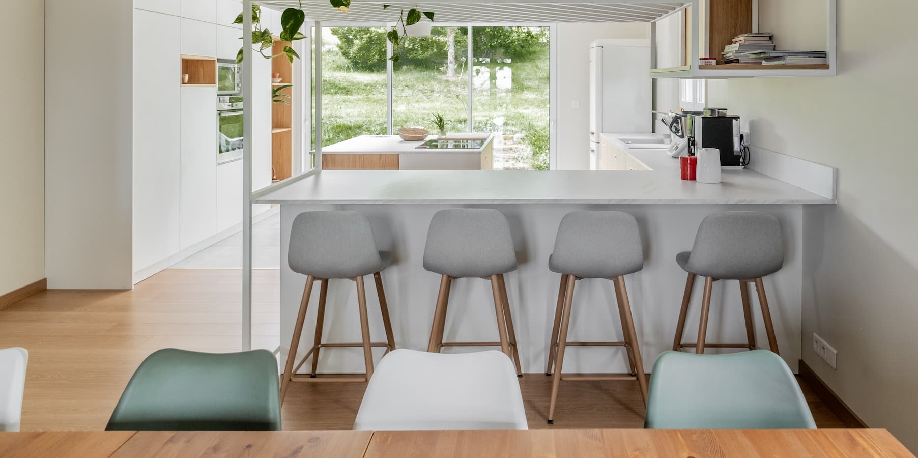 Selon les possibilités du lieu, je m’assure de concevoir un plan de circulation fluide et des volumes de rangement pratiques et esthétiques. J’accorde aussi une importance particulière à la qualité de l’éclairage, élément essentiel de la convivialité et de la productivité.